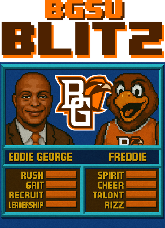 Shop our new EXCLUSIVE BGSU Blitz t-shirt ahead of a new era of Bowling Green football with Eddie George and Freddie Falcon a new dynamic duo!